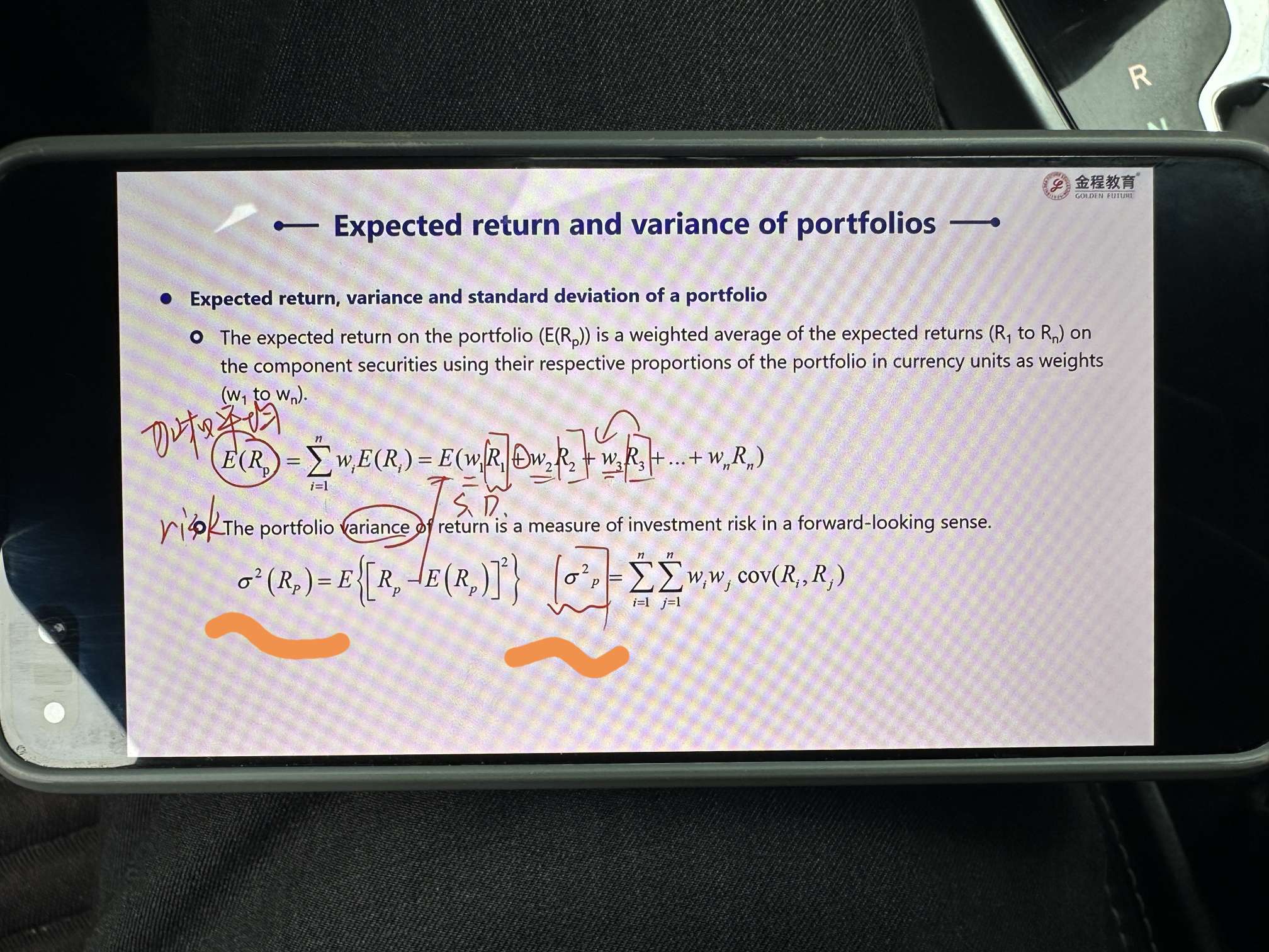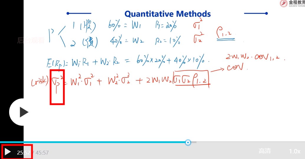 课件24:40那一页最下边两个公式,左边的那个σ2(Rp)和σ2p,分别代表什么?都是代表投资组合的方差吗?