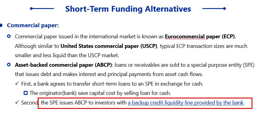 C错了,因为是投资者(而不是银行)购买了一种流动的短期票据,其中包括利息和本金,通过asset-backed commercial paper这种方式可以对mortgage这种市场进行投资,否则是无法投资的。