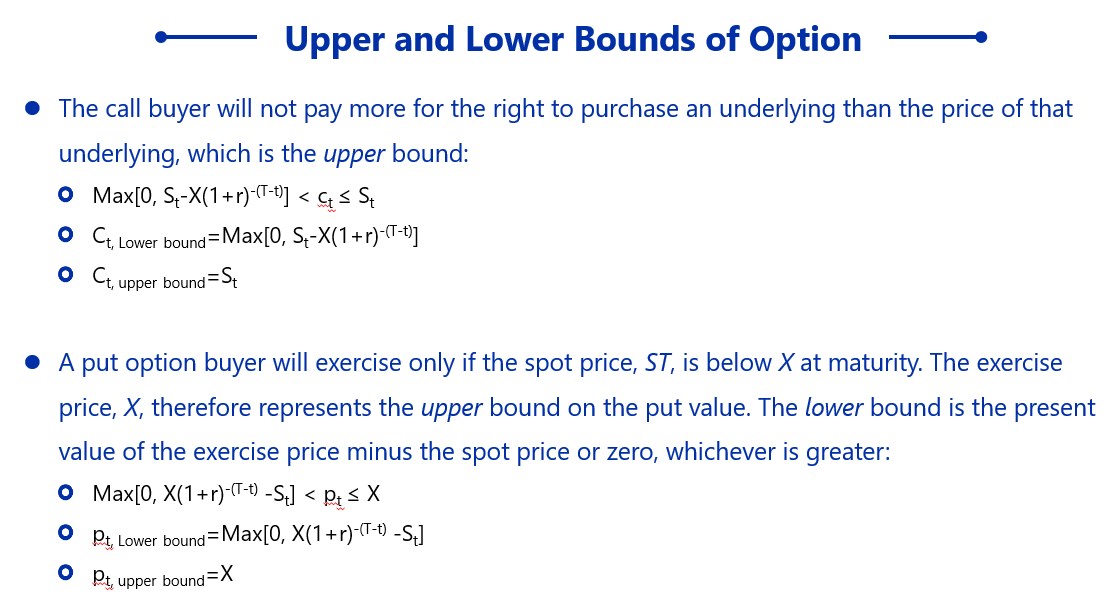 截图1说明了欧式的看涨和看跌期权,lower bound和upper bound是在对期权估值时的两个临界值