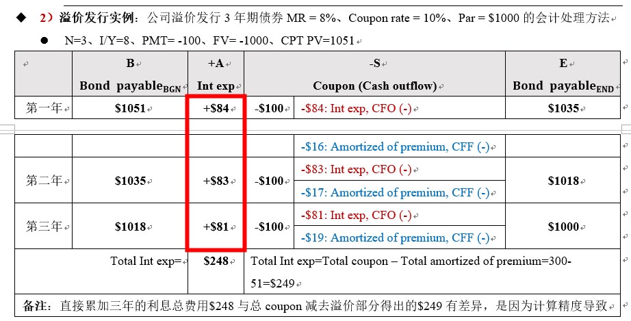 B选项正确。interest paid(coupon)是100,大于interest expense