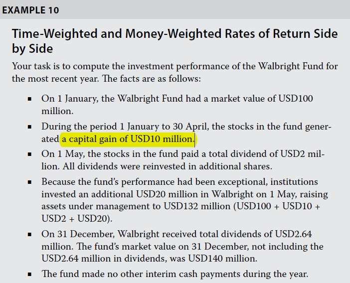 第一个图,里面写了是time-weighted rate of return of 21.03 percent for one year, 这个就是算的一年的,TWRR,刚好里面四个月加八个月就是1年,就不需要开方。