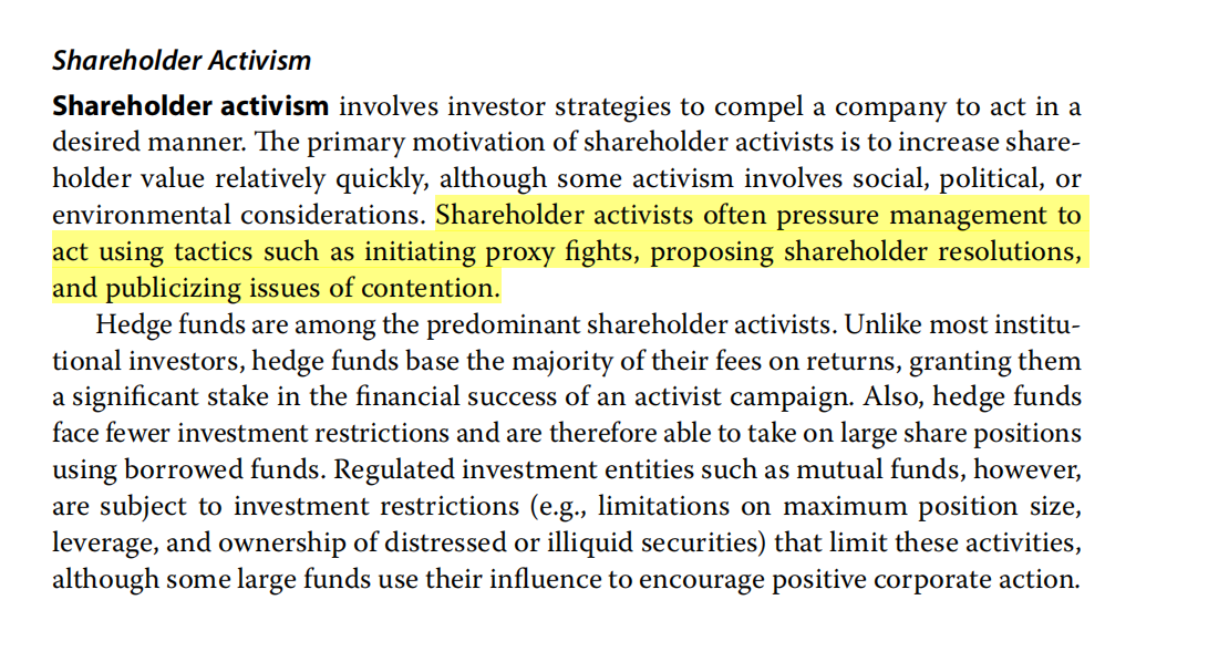 講義那裡提到激進的股東有助穩定公司策略方向?