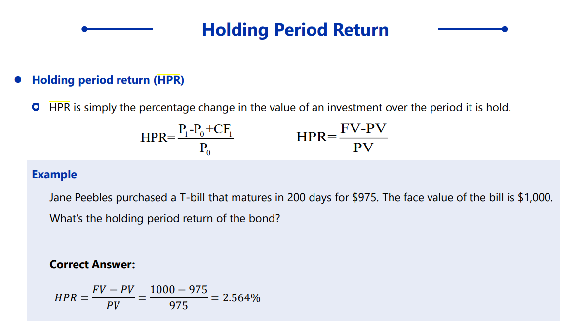 公式截图在下方,区别点是HPR是非年化的,投资了多长时间,HPR就是对应了多久。