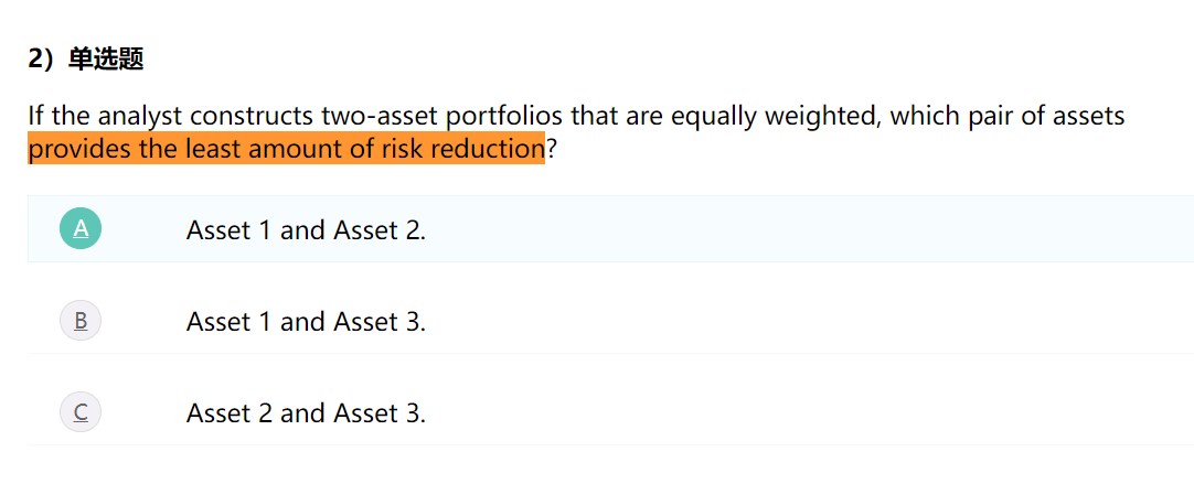 provides the least amount of risk reduction.这个还是不理解为什么选相关系数最大的,怎么理解least risk reduction?感觉课上没讲过reduction这个东西,就算相关系数最大方差大,那跟risk reduction有什么联系吗...