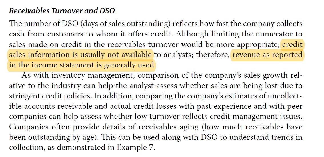 应收账款周转率,分子使用credit sales更合适,但是正是因为credit sales很难得到,所以才用sales进行替代。这道题分子使用credit sales是正确的。