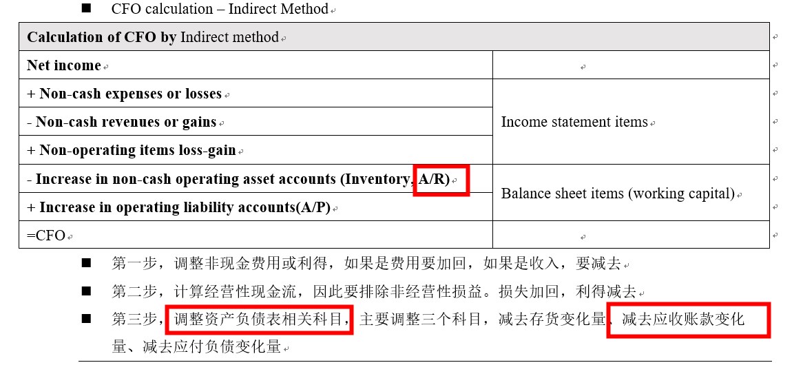 老师,在CFO间接法计算过程中的第一步,减去非现金收入那一项里,应收但未收的款项在当年的发生额(即△AR)不也应该减去吗?