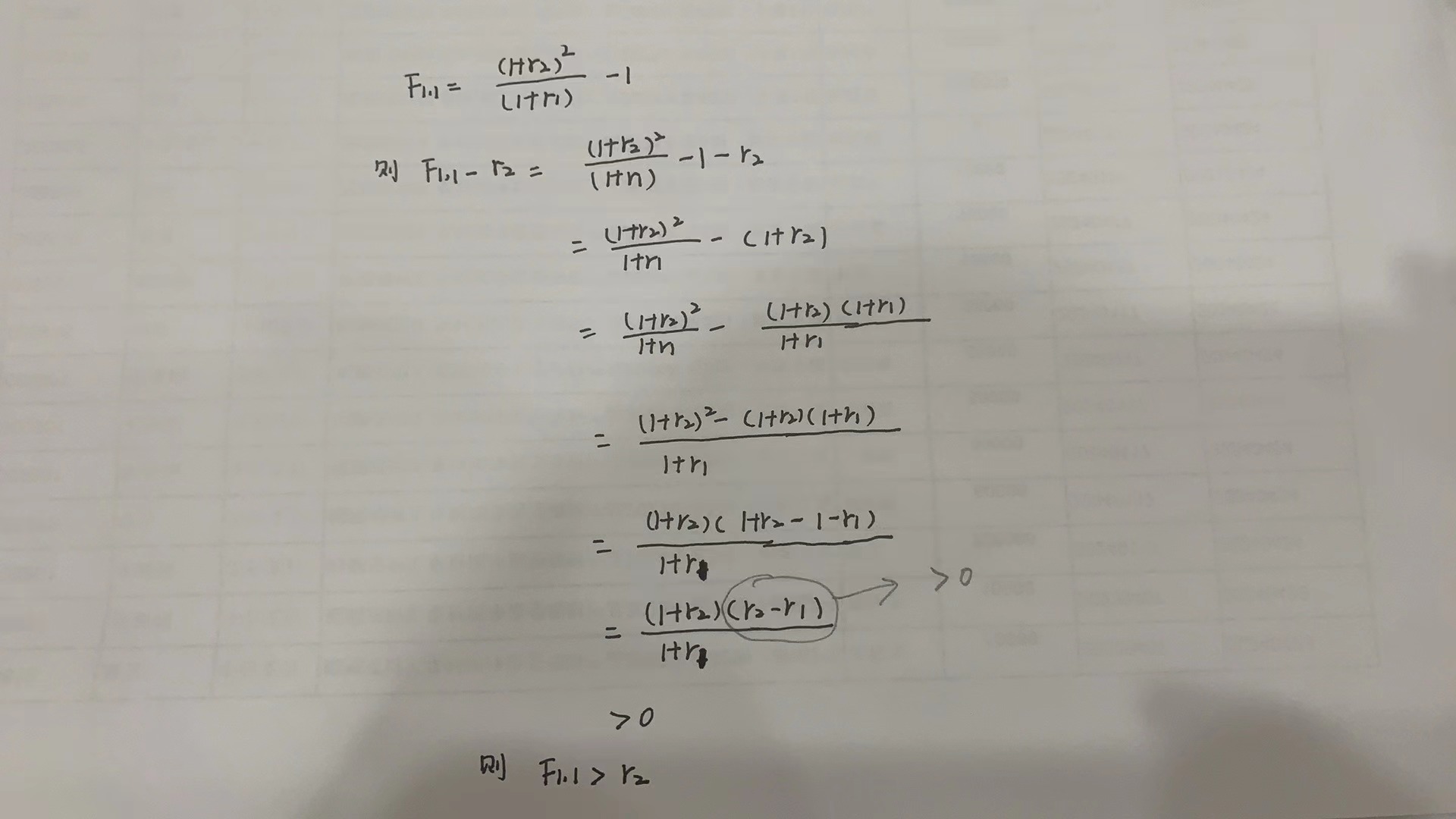同学好,1、这里求r=3.177%,并不是最终的答案,还需要继续往下计算,所以和0.62%并不冲突哦;2、2.667%的计算方式并不是这样的,而是利用exhibit 11的数据,97.402(1+X)=100 , 可解X=2.667% ,同理 93.937*(1+X)的2次方=100 ,解得X=3.177%。同学可参考这个方法计算一下2.012% 和2.539%的计算。3、 rising rate environment 中文意思是利率在不断上涨的,则r2>r1,为什么 F1,1>r2 ,推导公式见下图。推导过程不需要掌握,仅作为辅助工具来帮助记忆。