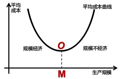 同学你好,per unit cost就是总成本除以产量。规模经济就是随着产量的提升,单位产品的成本在不断下降,也就是下图中的左半部分。而规模不经济就是随着产量的提升,单位产品的成本在不断上升,也就是图中的右半部分。图中的O点就是minimum efficient scale,也就是说如果产量为M,那么此时平均成本达到最小。要是继续增加产量,就是规模不经济了,单位成本会上升