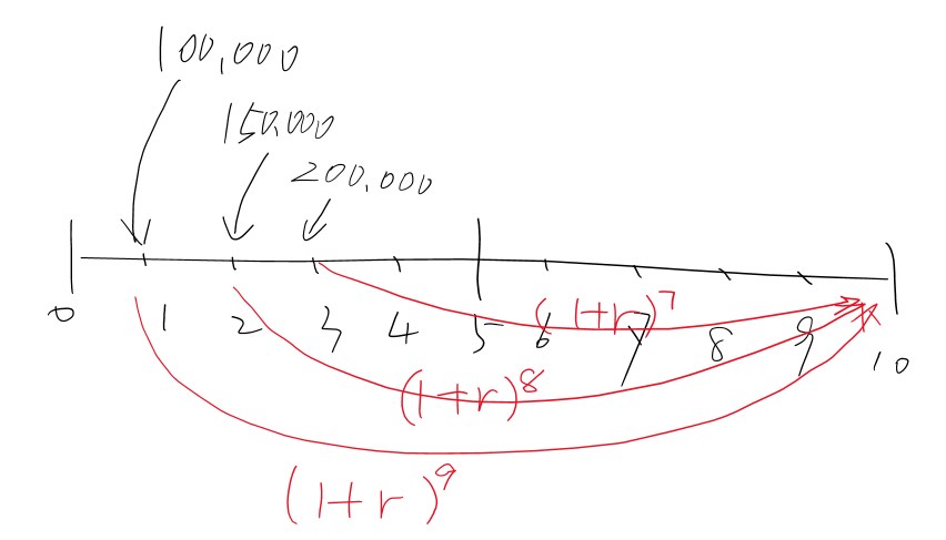 为什么不能直接将第1年、第2年、第3年年末的payment 直接算10年后的future value?