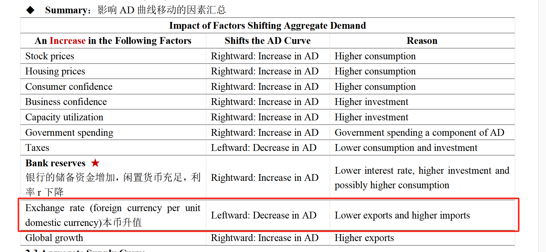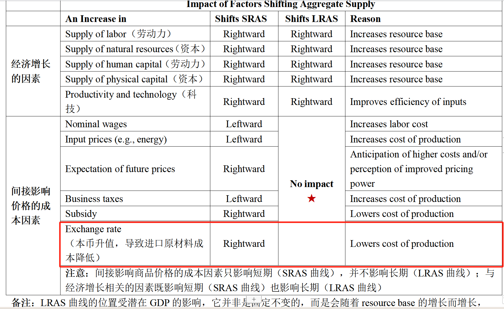 这里是供给侧的哈。需求侧说的是本币升值,净出口降低,AD左移,gdp降低
