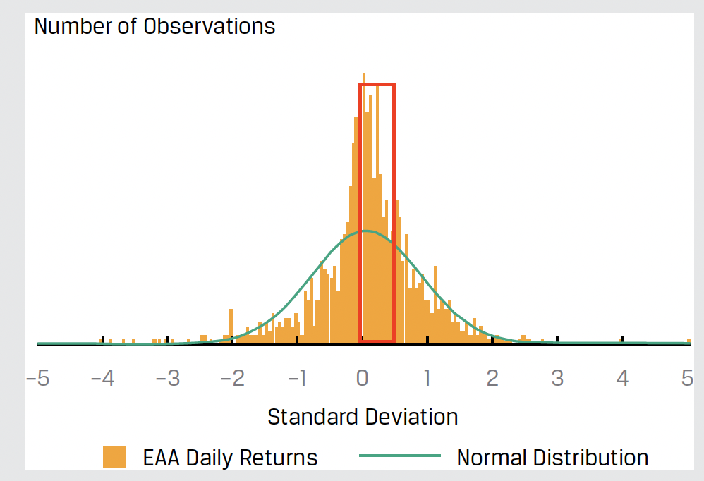 Module 3-书P113-Example 6-1. 截图2,题干中的哪些信息可以得出第1个小方块的结论:“低于平均值0.0347%” 的观测值的影响?2. 第2个小方块,“收益的最高频率出现在平均值的0.0到0.5个标准差范围内”请在截图中用红笔框出这块区域