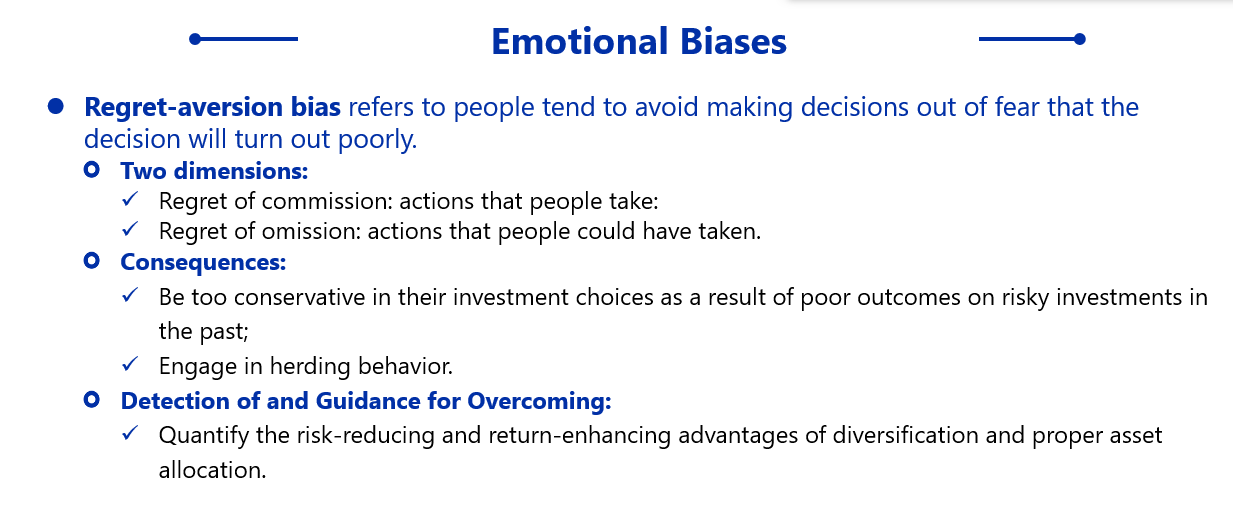 Regret-aversion bias 它指的是避免做出抉择 avoid making decisions,投资决策不变,和B这个选项和status quo相似