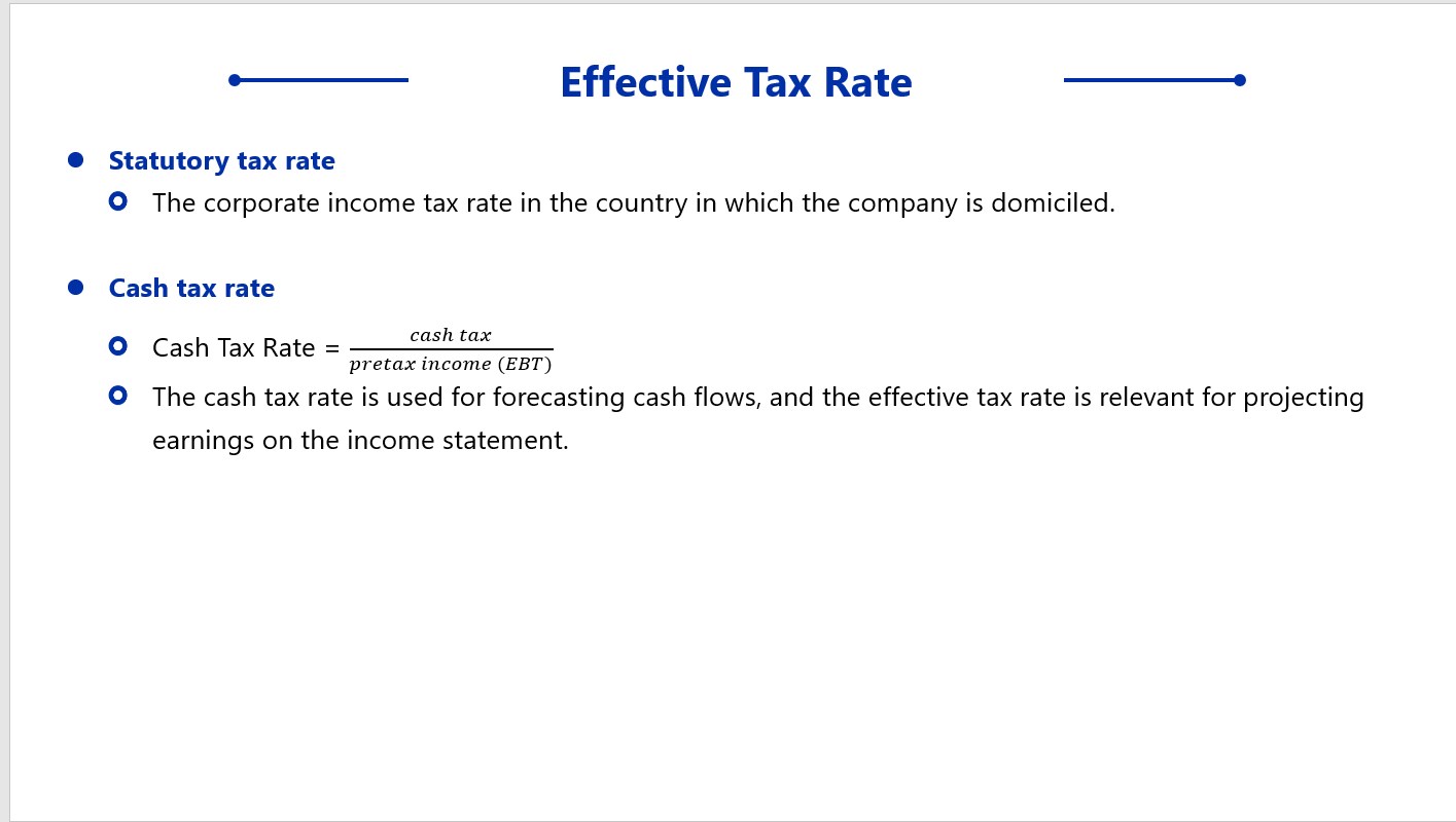 cash tax rate是用cash tax/EBT,cash tax是实际支付的税收,现金流概念,所以可以预测现金流。