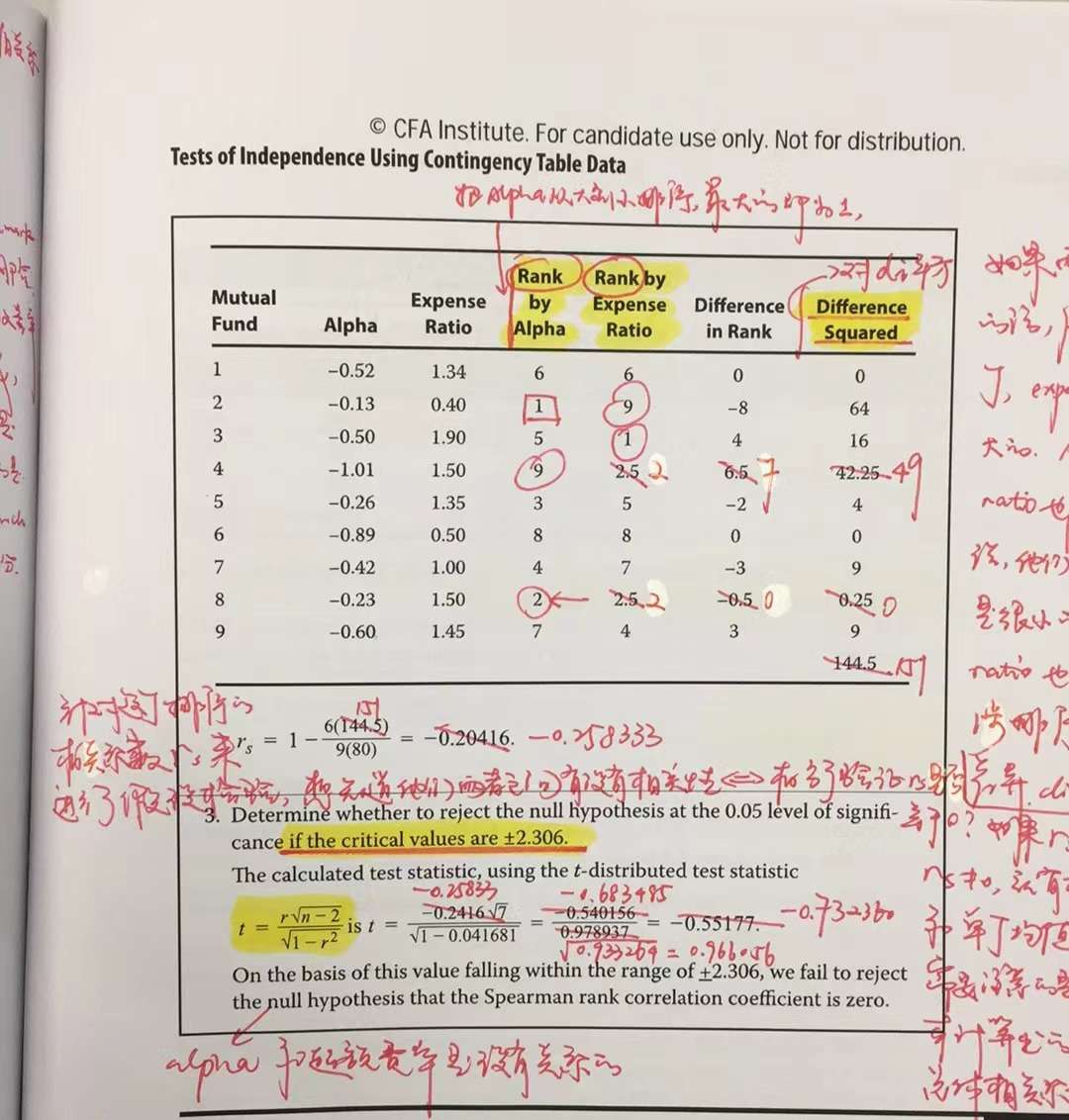 根据我的截图,Difference squared=151 而不是官网勘误中的144.5?rank by expense ratio怎么会出现2.5?只会排第2名或者第3名,怎么会有排2.5的名次?