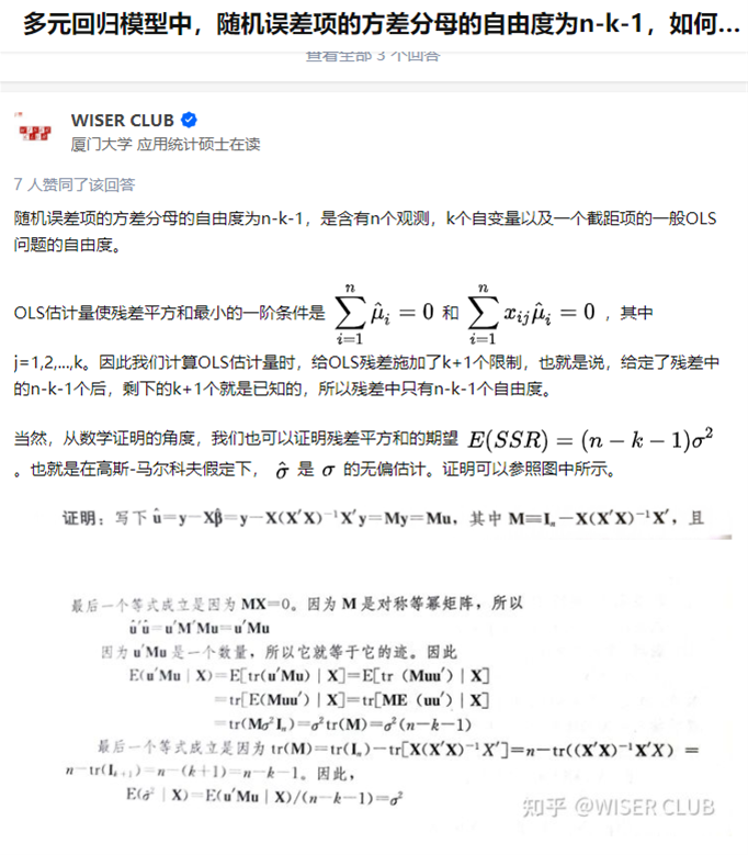 CFA考纲中不要求掌握自由度来由,不过自由度的设定可以作为了解内容补充学习,以下链接有一个较为详细的资料(截图来自第一个链接):