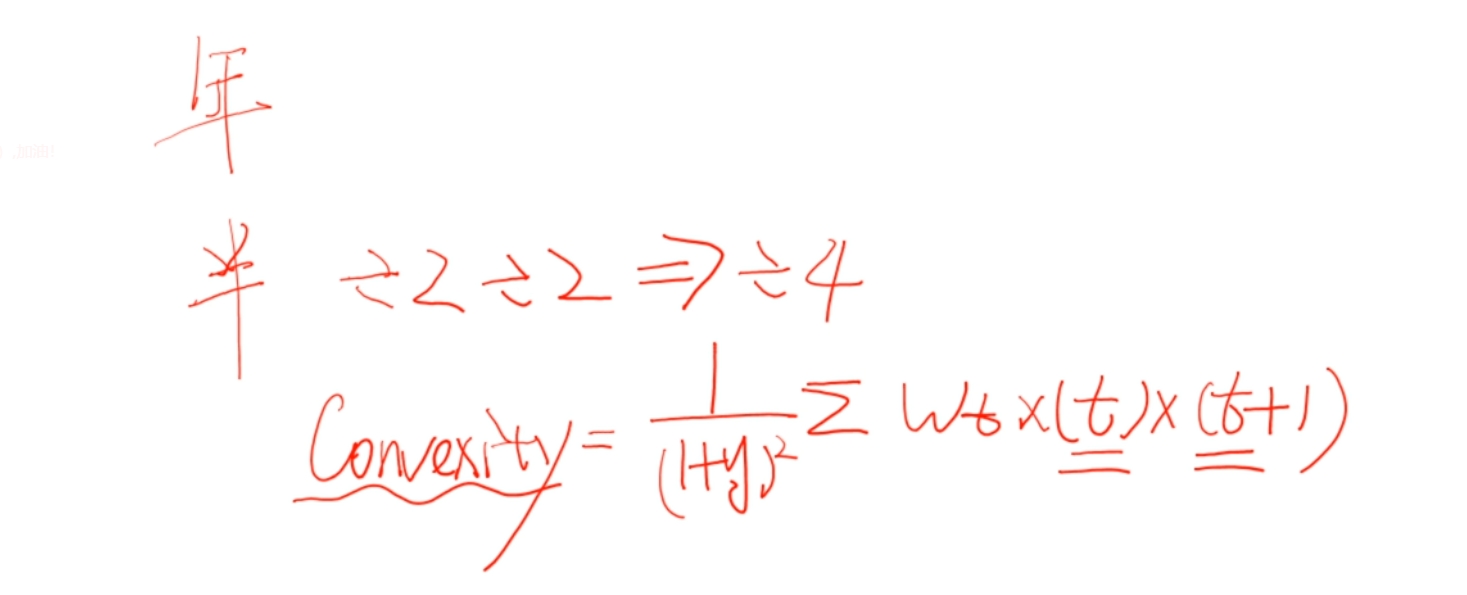 除以四的原因是债券本身是半年付息的,因此求出来的是半年的convexity,由于其公式中存在两个t,所以转化成年度C需要除以两个2,这点老师在视频里讲的比较清楚了,可以再看看讲解视频的哦!