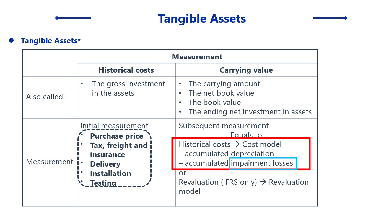 然后再revaluation model下,使用fair value来计量PP&E的价值,fair value可以涨跌,所以账面价值可以下跌后再上涨,甚至是上涨超过原值。