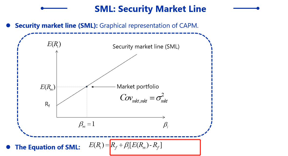 市场组合的beta我们定义为单位1,因为市场组合是一个投资组合,只有系统性风险