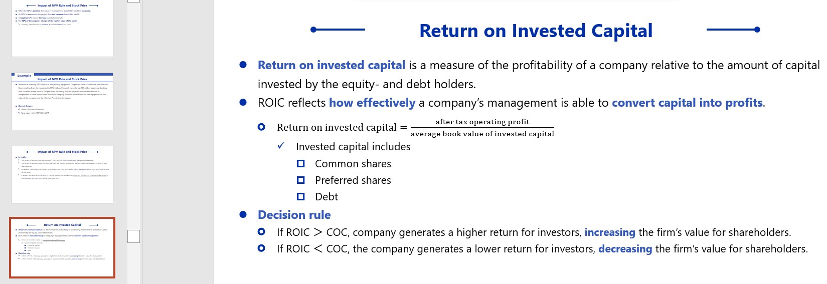 请参考以下截图,profitability涉及的知识点是ROIC