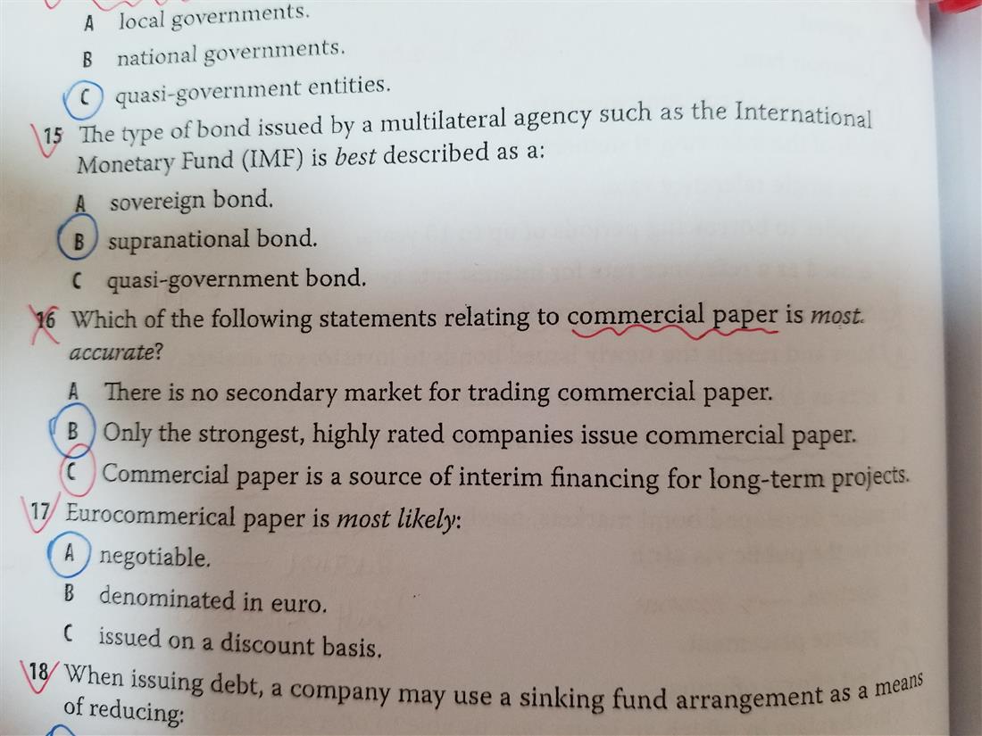 - 为什么不是C选项呢?credit risk是由于借款人违约未能偿还而使债权人遭受损失的风险;solvency risk是由于自己财务状况不佳而无法偿还到期债务的风险。二者紧密相连