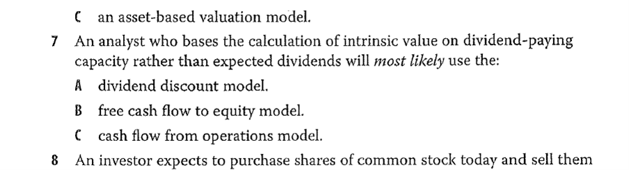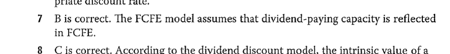 题目的解答说FCFE模型假定股利发放能力影响FCFE模型,但是对公式里也有g啊,也是对未来的假设,实际上就是expected dividends啊?