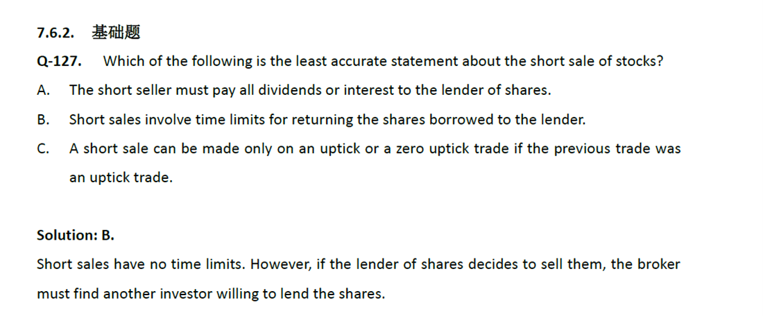 这道题的C选项什么意思?做空只有在报升的时候才可以?不太明白。