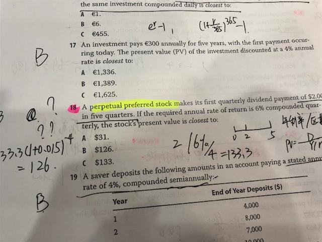 老师,同上一道题 time value of money 第18题 漏掉一点,第二次折现的时候 应该是133 除以 1.015 的4乘以4 16次方吧? 答案是4次方,不是quarter compound 啊