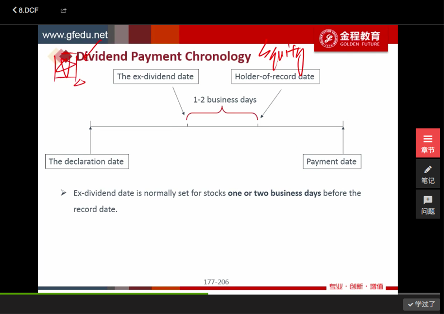 老师你好,之前企业理财里老师是讲ex-dividend date和HOR date中间出去节假日一定只差两天,这里的PPT是1-2天,请问以哪个为准?