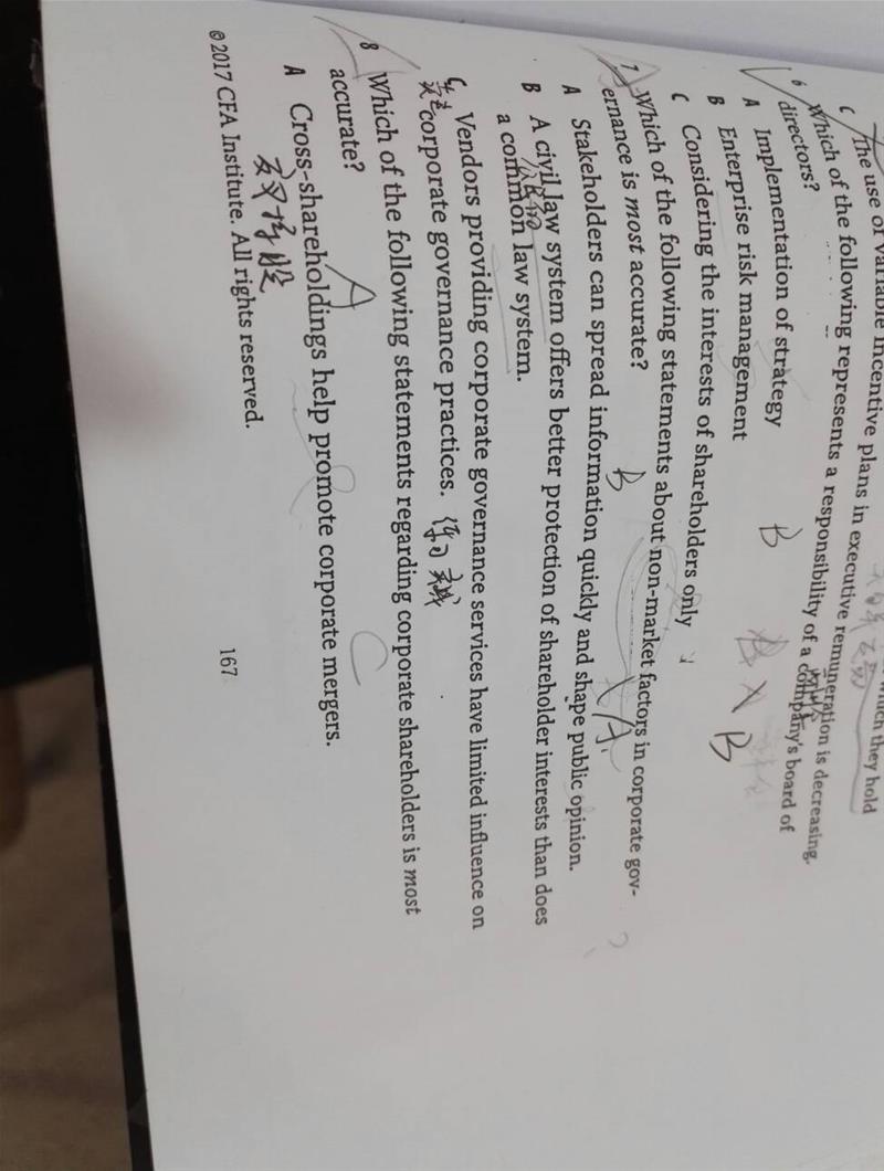 第7题怎么解释,我选的是B 第8题的交叉持股又是什么呢,没有学过,只讲过交叉违约条款,能不能解释一下
