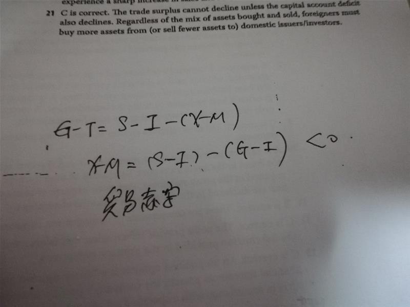 查看试题 已回答你好,原版书后题目,第90面第19题,这里说的是贸易赤字,出口小于进口,跟资本什么关系,还没有理解,出口小于进口,相当于,要汇外汇出去了,那外汇现金就出去了 如中国出口小于进口,汇出去美金大于收到美金),之前有一个问题说到,美元现金就流出,那资本就流入了,所以资本就盈余了,不知道是否正确?另外,答案的解释不是很明白,请解释 谢谢!
