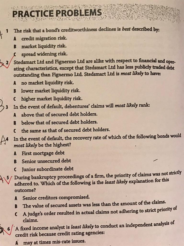 - 为什么不是C选项呢?credit risk是由于借款人违约未能偿还而使债权人遭受损失的风险;solvency risk是由于自己财务状况不佳而无法偿还到期债务的风险。二者紧密相连