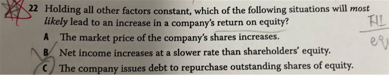 老师我想借这道题问一下,选项C,发行债务重新购回股票,那这个重新回购来的股票是算作资产负债表里面的Equity吗?还是算作Asset?