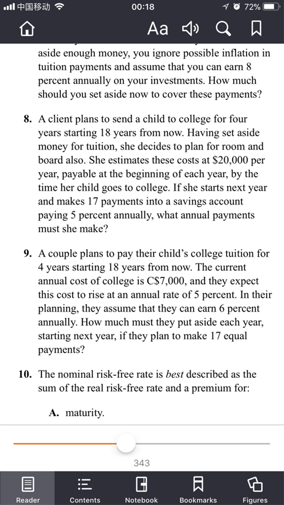 已回答第八题,请问老师为什么这里说明了20k是每年年初付的钱,却还是在算的时候,用的不是bgn mode?为什么用end mode?如果用end mode不就说明我在之前的17年里存的17比payment到了第18年才开始用吗?这样之间不就有了一年的gap?