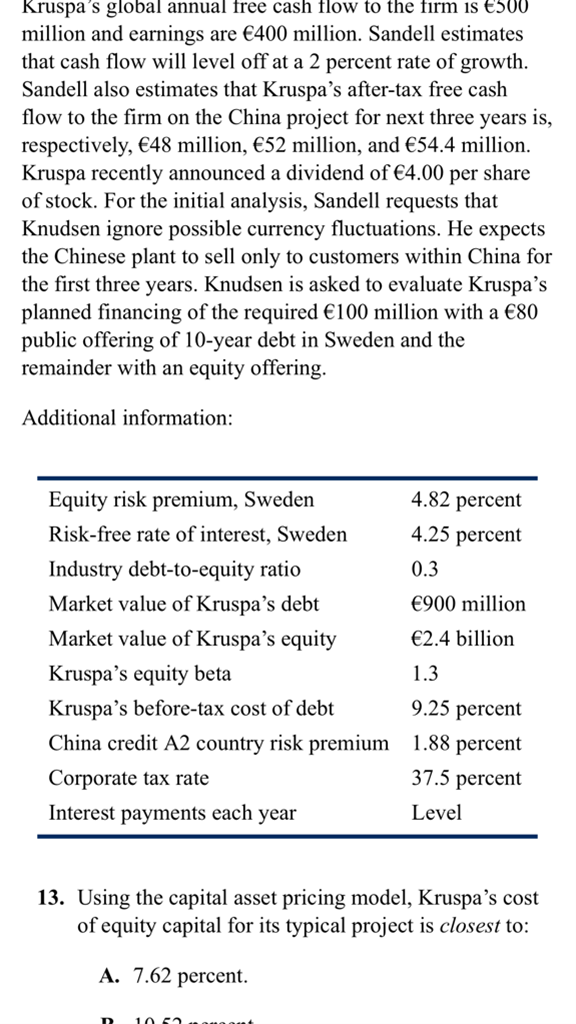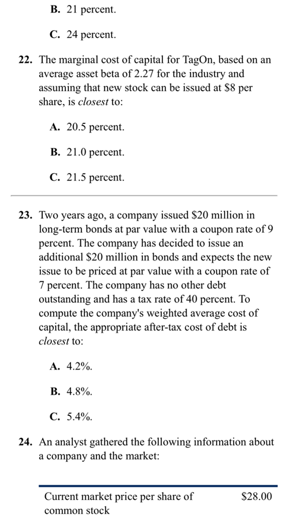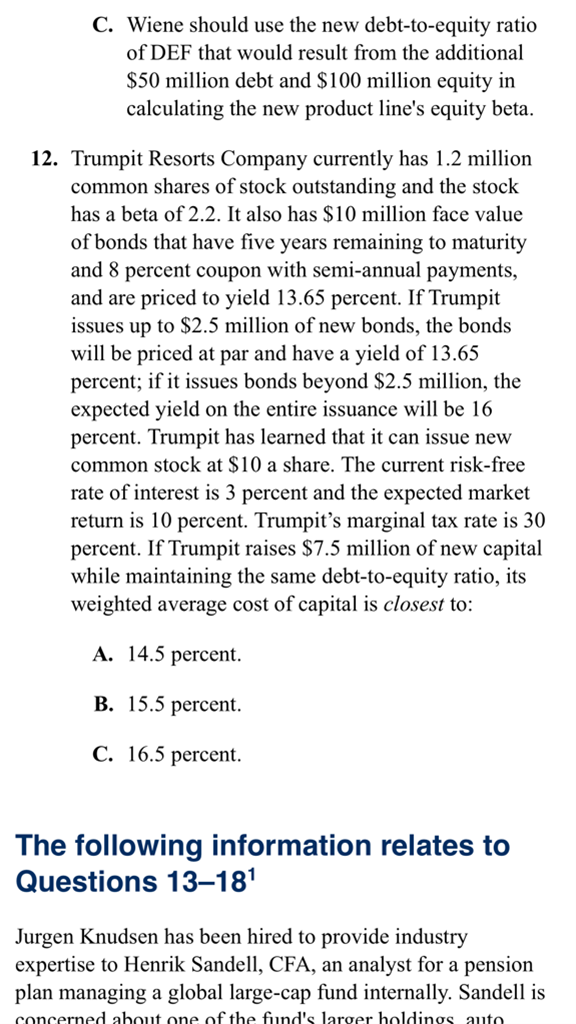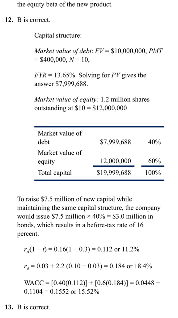 1,老师这类题中为什么Debt to equity ratio 不能直接用题干中给出的0.3? 是因为是industry index缘故吗? 2,那如果给出的是target 或forecasted 那优先用market value算出的还是给出的debt to equity ratio?