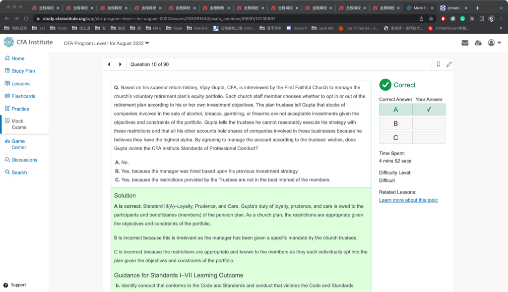 包含CFA一级传统在线课程、通关课程及试题相关提问答疑;