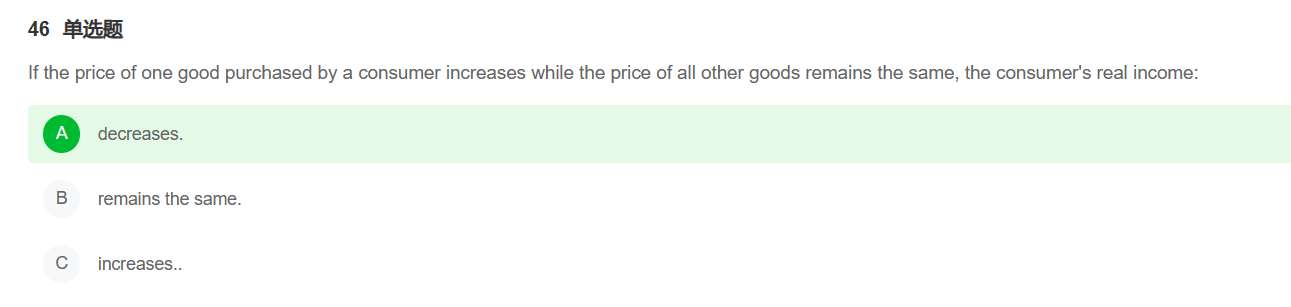 这题后面那句其他所有的P都相等有用吗?是不是只一个商品价格上升了,真实收入都会下降?