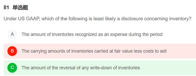 这道题不理解。C选项视频解析说USGAAP下没有回转,但是讲课的时候不是说大宗商品可以回转吗? 还有这个B,是指的减值吗?