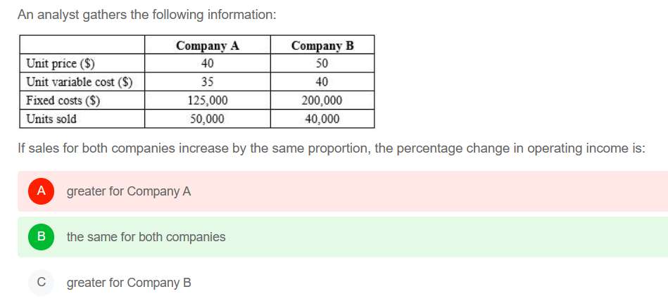 请问这道题如何想到的是算DOL? 我带入数字,然后假设sales都变动一样,算出来是A。