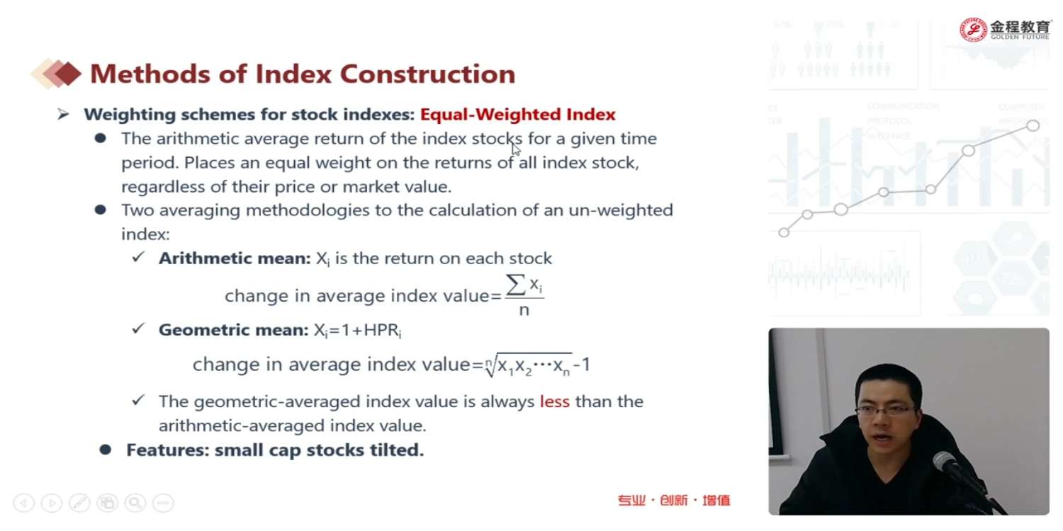 equal-weighted-index中老师讲到的是每个股票在成分中占的价格相同,这里是否可以采用调和平均数的方式来对这个地方进行理解和计算?