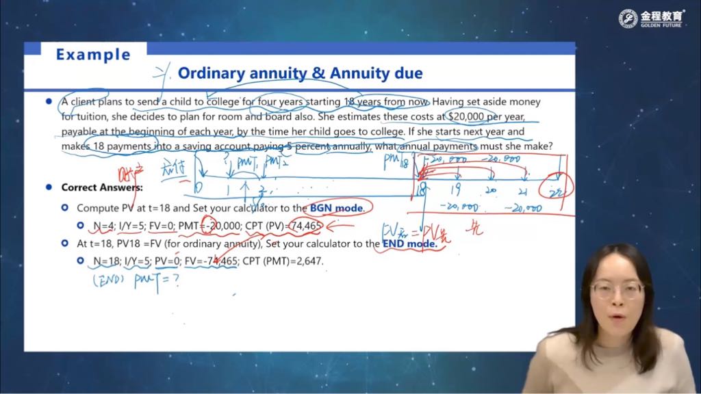 但是按老师tips说的,由于这里我们带入的是前段的FV,是属于输入的,所以需要把pmt剔除掉再输入。就会导致,前面部分的FV和后面部分的pv不相等了。所以我的问题是如何理解老师之前的tips。