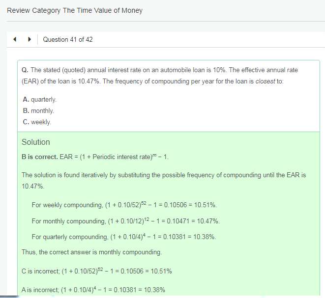 Module 1-官网习题-第41题-weekly compunding rate是按照一年13个月,一共52weeks来计算的,是吗?CFA题目中,涉及weekly compounding的,都是按照52weeks来计算的?
