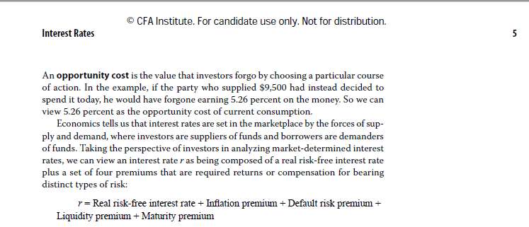 Module 1-官网习题-第37题-教材P5第2段中所写的: Taking the perspective of investors in analyzing market-determined interest rates, we can view an interest rate r as being composed of a real risk-free interest rate plus a set of four premiums that are required returns or compensation for bearing distinct types of risk. 这段话中的r,指的就是market-determined interest rates?