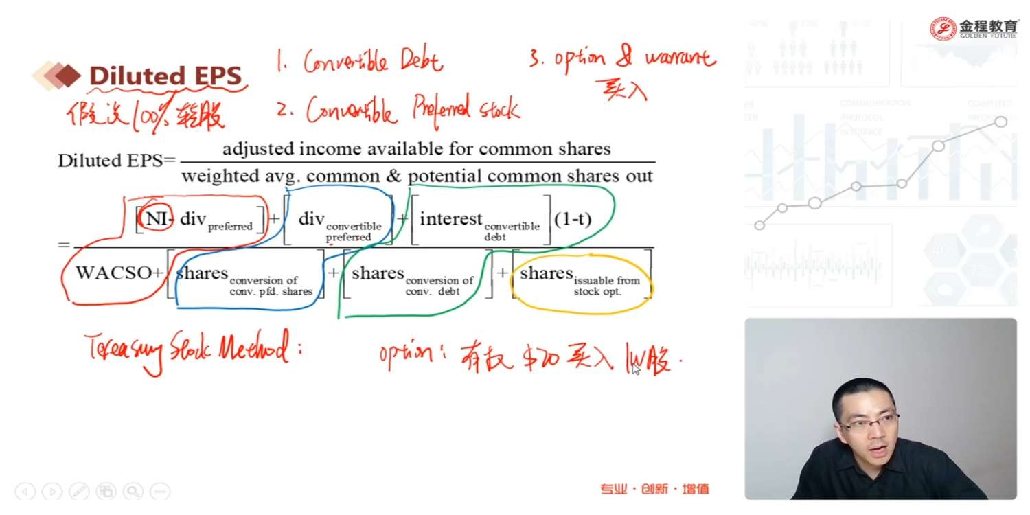 假设公司年初发行的option价格为10,公司年末的股票价格为5,投资人不行权,是不是代表分母部分,在计算DEPS中黄色花圈的部分为0?