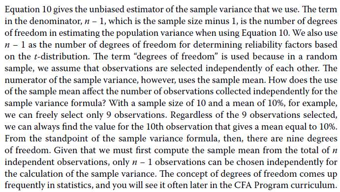 查看试题 已回答教材P273-Module 4-公式10下方的第一段中从第10行开始,Regardless of the 9 observations selected, we can always find the value for the 10th observation that gives a mean equal to 10%. 请问这句话怎么理解?为什么“不管选择了9个观测值,我们总能找到第10个观测值的平均值等于10%。”为什么第10个观测值的平均值一定等于10%?前9个观测值的平均值呢?