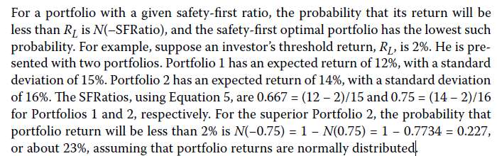教材P264-safety-first ratios 中的算Portfolio 2的,为什么the probability that portfolio return will be less than 2% is N(−0.75) = 1 − N(0.75) = 1 − 0.7734 = 0.227?函数N(Z)代表什么含义?另外,为什么括号里的是-0.75?为什么N(0.75) = 0.7734?0.7734这个数字是怎么得出的?为什么23%表示portfolio returns are normally distributed?