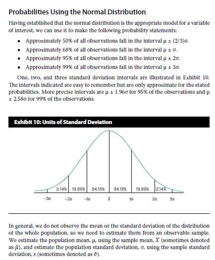 教材P258-(1)请问Exhibit 10上方的4个小黑点中的数字是怎么得出的?为什么50%的概率对应(2/3)σ,95%的概率对应2σ,99%的概率对应3σ?但是,另一方面,下方一段的最后一句话,写的却是95%概率对应1.96σ,99%概率对应2.58σ?(2)Exhibit 10中的各个数据,是怎么得出的?