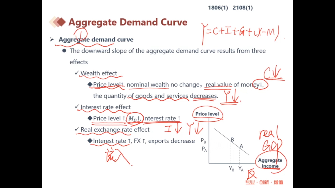 - 前面在讲Aggregate demand curve的时候说,价格上涨使消费下降,而这里又说价格下降消费变少,为什么存在矛盾?