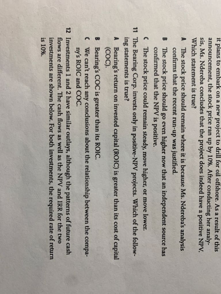 老师,请问ROIC大于COC时,NPV是否一定大于零?此问题基于课后习题Reading28的第11题,烦请一起解析,谢谢!