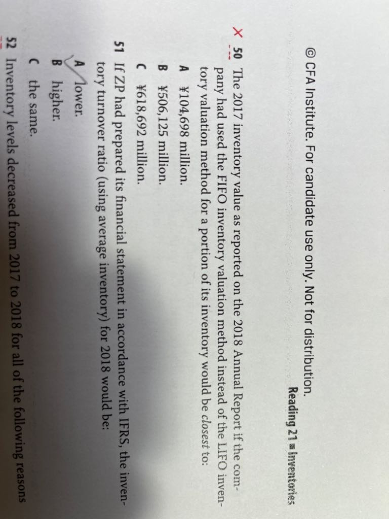 第50题,note2(第二张照片)中披露的既然是部分子公司按照lifo计量的情况,为何还可以使用这些数据当作lifo reserve呢?没太懂