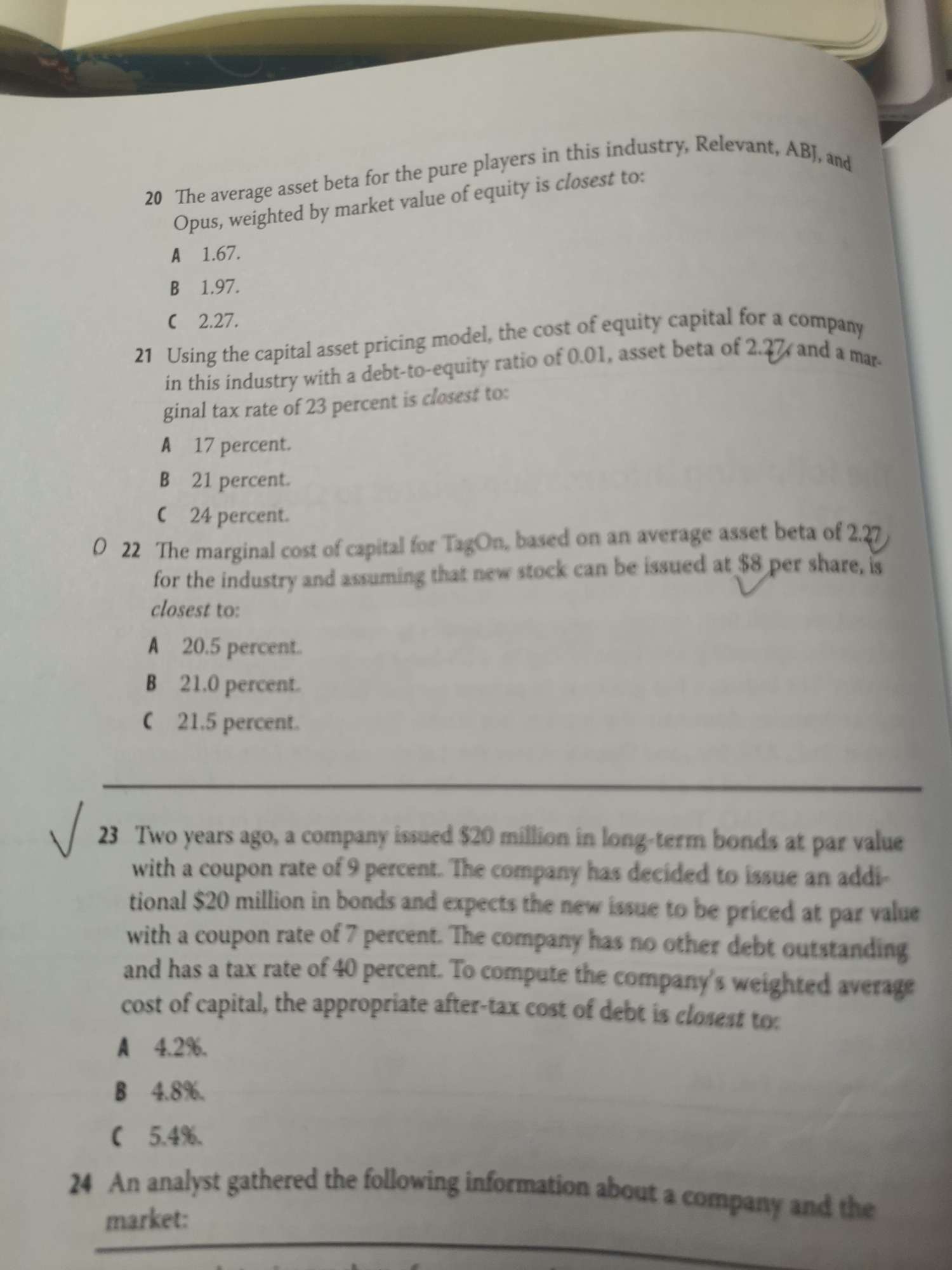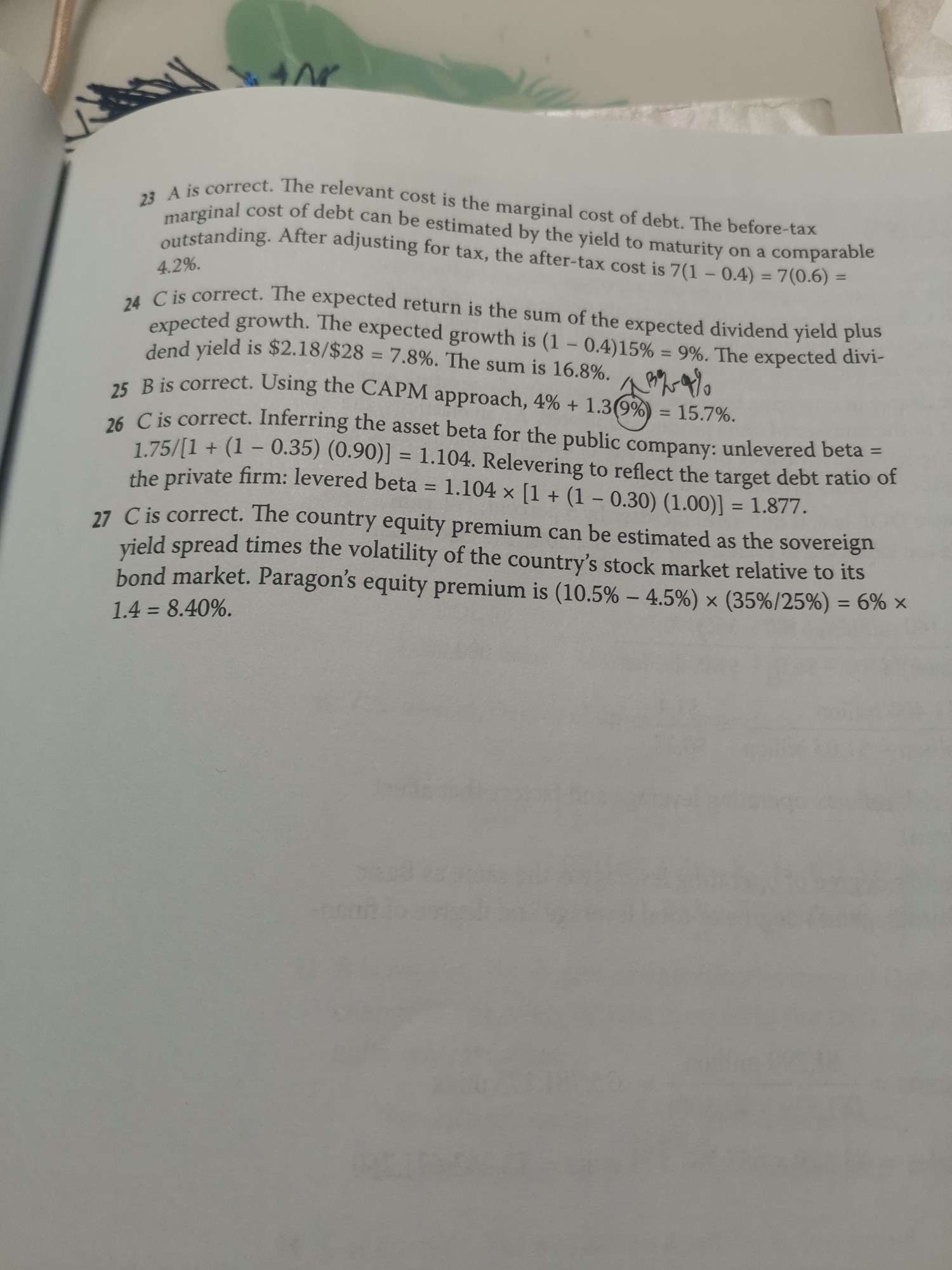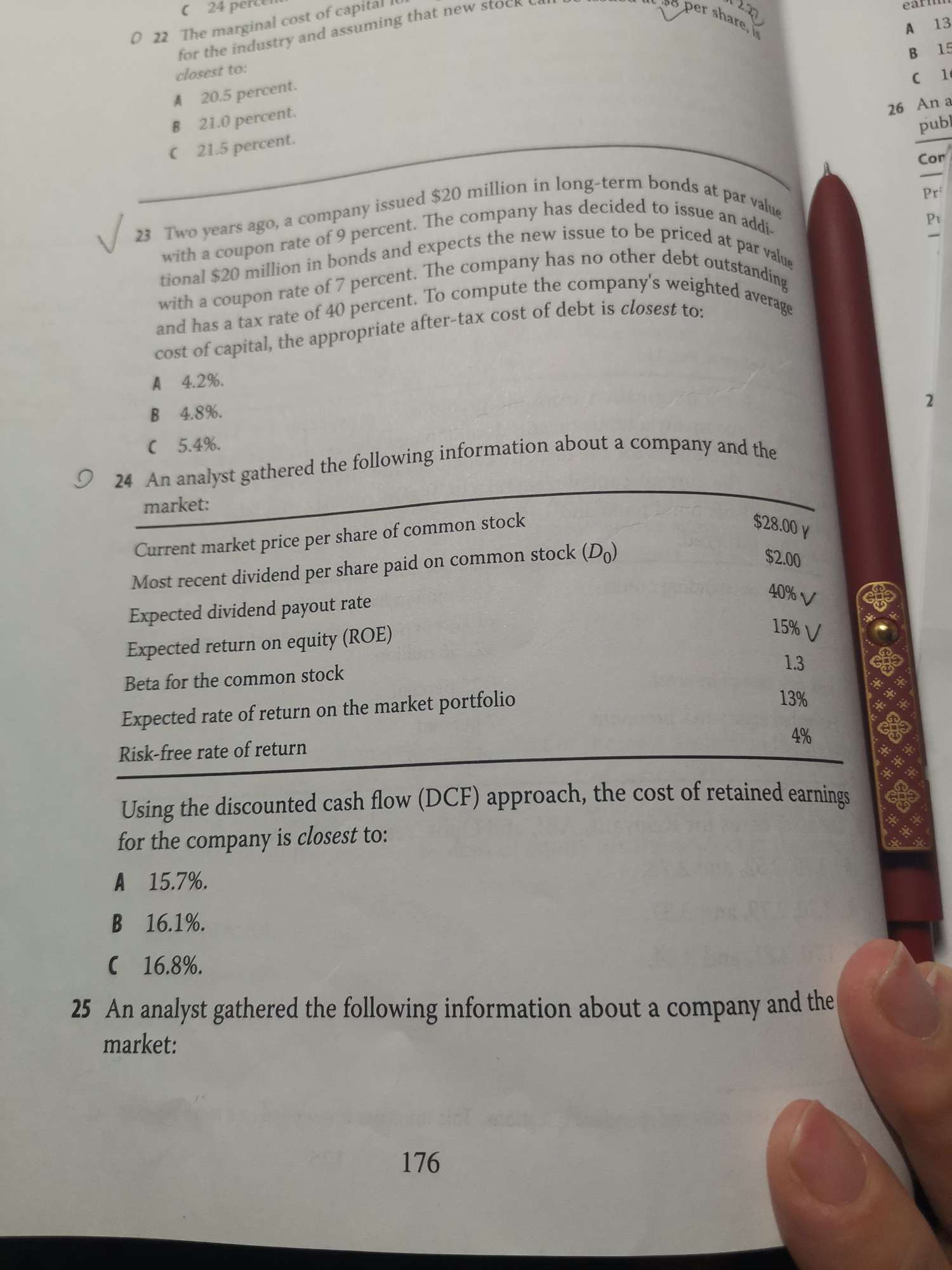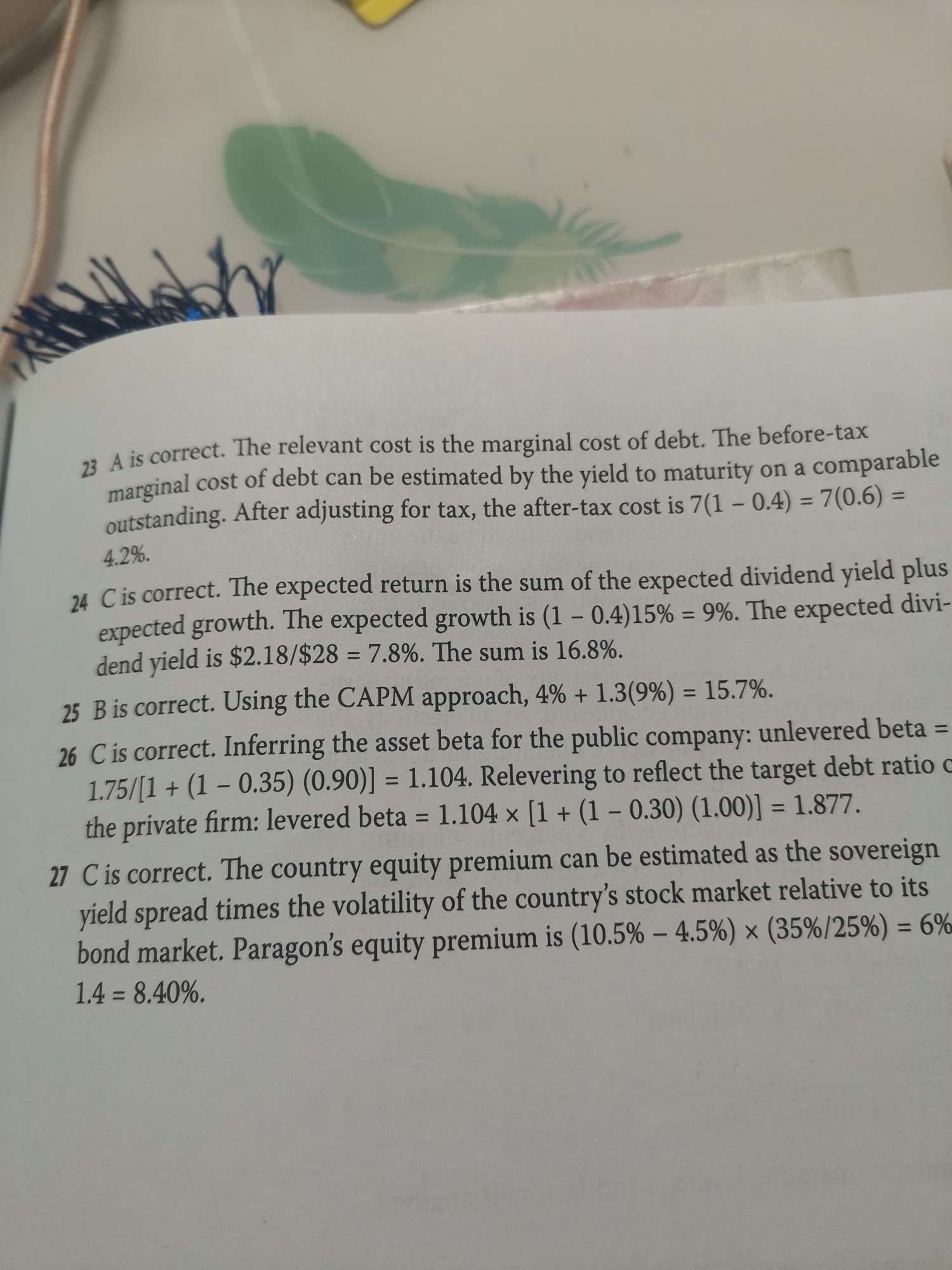 老师您好!第24题没看懂。DCF的公式是什么?7.8%算法没明白 谢谢!